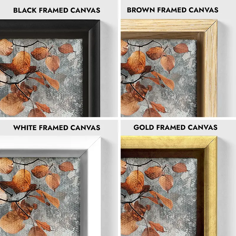 Autumn Branch Leaves Canvas Wall Art Print – Orange Fall Nature Artwork – Seasonal Botanical Decor